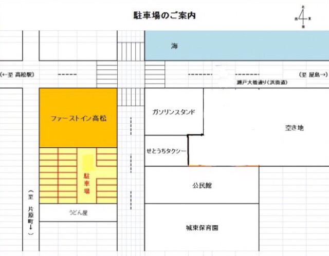 建物南側に無料の駐車場(25台分)がございます。当日先着順となりますので満車の場合はお近くのコインパーキングをご利用願います。