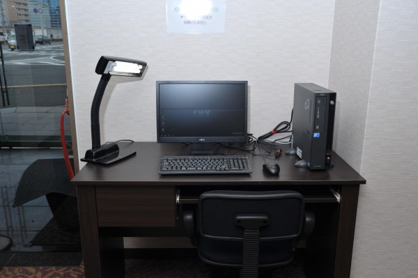 4階エレベーター前にはランケーブルを完備。ご自身のパソコンをお持ちの方は、こちらでご利用いただけます。
