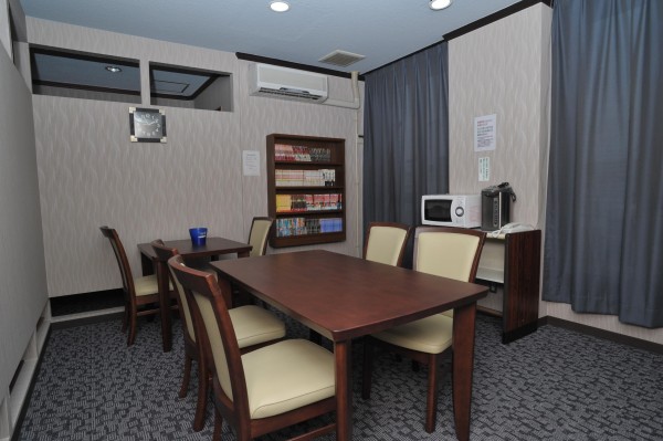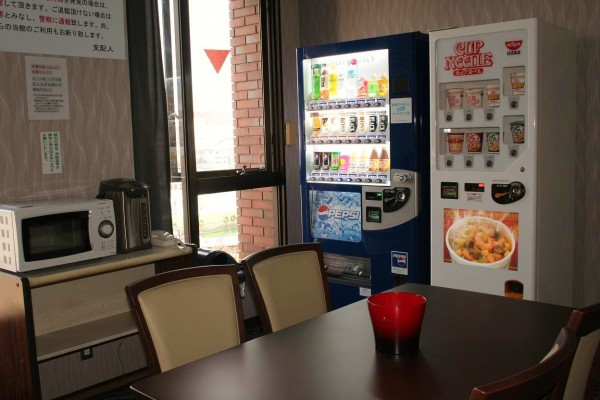 4階のリラックスコーナーには、お飲み物の自動販売機が設置されております。また、電子レンジとポットがございますので、こちらでお食事していただくことが可能です。